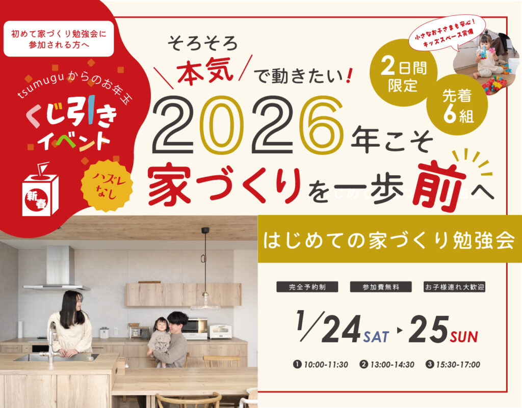 HOME お知らせ 1月イベント情報UPしました! 1月イベント情報UPしました! \\\ 1月イベント開催情報 ///■はじめての家づくり勉強会はずれ無しのくじ引きイベントも開催いたしますので、ぜひご参加くださいませ。 詳しくはコチラ